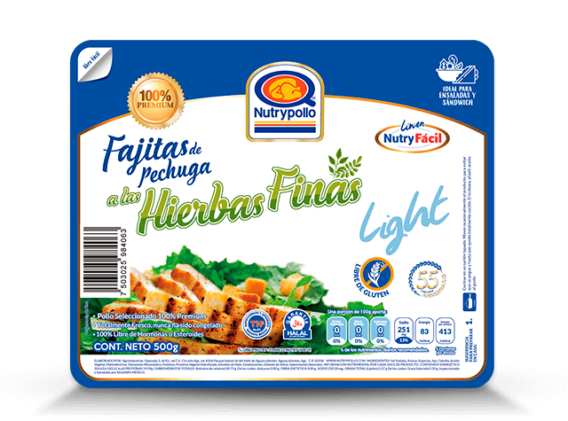 Nuestra línea NutryFácil ®, actualmente cuenta con 18 productos Premium: 6 sabores de Alitas perfectas para el asador, 5 sabores de Fajitas de Pechuga que puedes usar en Sándwiches, ensaladas o pastas, además tenemos Carne de pollo al pastor, Carne de pollo adobada y Chorizo de Pollo ideales para tortas o tacos.