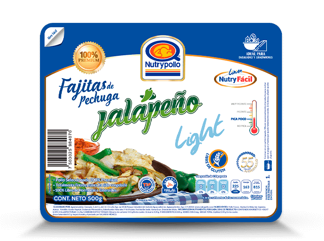 Con trozos grandes de pechuga entera, marinados con mezcla natural de chile jalapeño y especias. Con sabor a chile pero poco picante. Muy bajo en grasas y carbohidratos y libre de azucares.